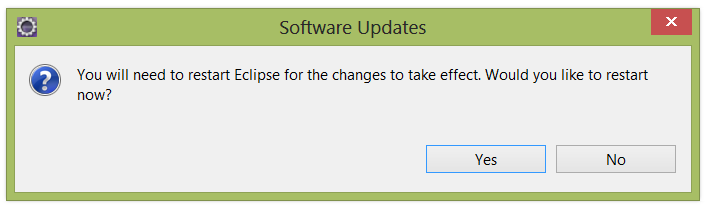 Ao final aparecerá uma mensagem perguntando se você quer restartar o Eclipse. Clique em OK e ao iniciar o Eclipse carregará as configurações do plugin.