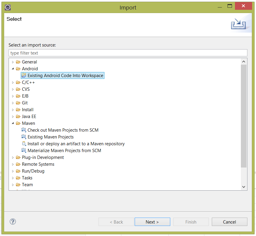Para verificar se tudo foi feito da forma correta tente importar um projeto Android de preferência um projeto usando Maven.