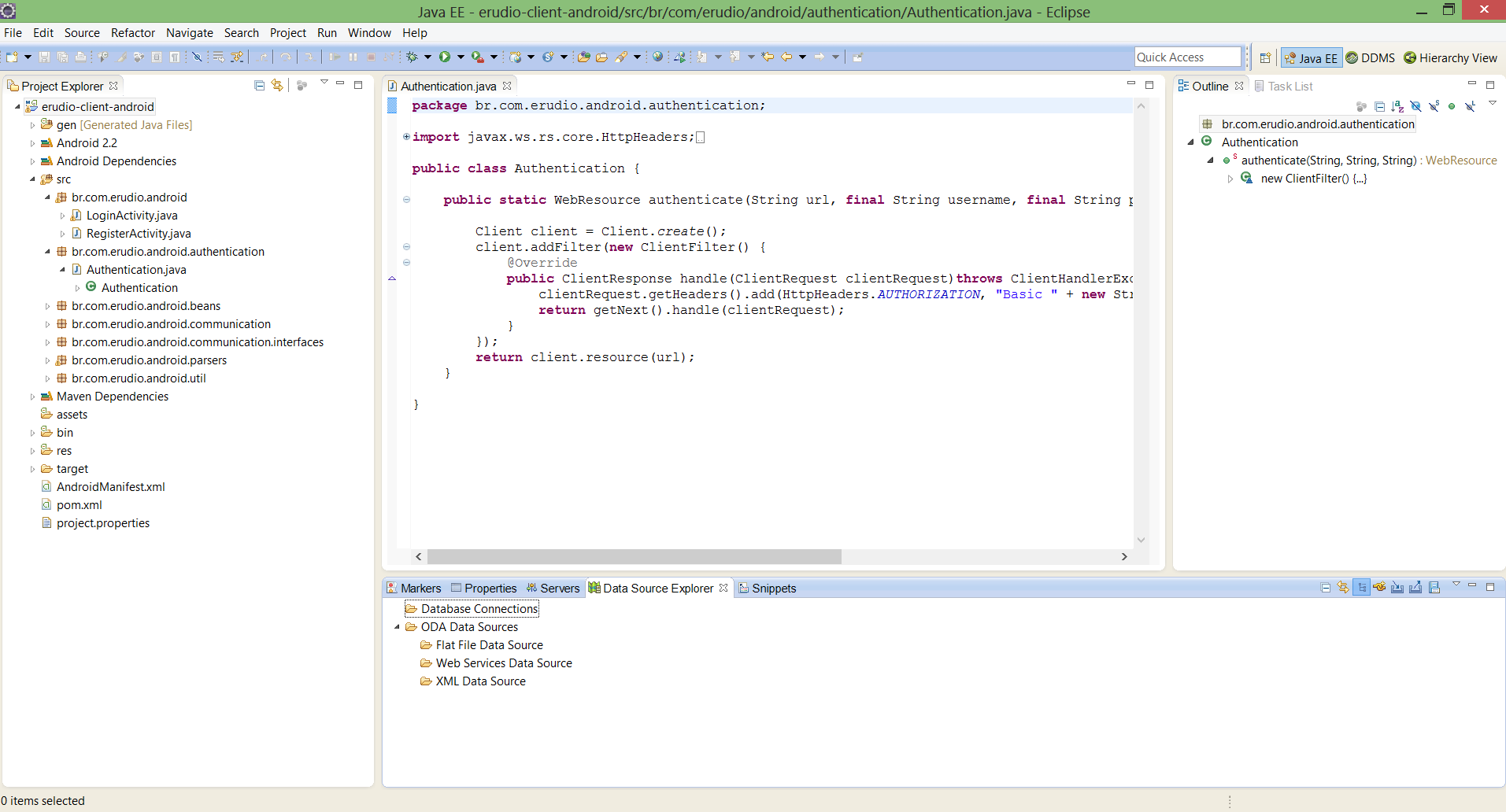 Se tudo acontecer como deveria você verá algo semelhante a imagem abaixo. Aí basta você alternar para a perspectiva Java ou DDMS e começar a codificar.