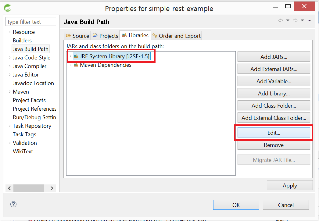 Na aba libraries selecione sua JRE System Library e clique em editar.