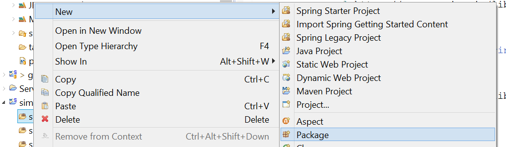 Feito isso abra o souce folder e clicando sobre o pacote com o botão direito New >> Class