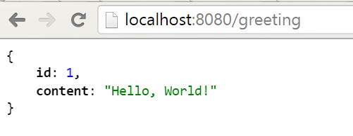 Vá no browser de sua preferencia e acesse localhost:8080/greeting e terá uma resposta parecida com a imagem abaixo.